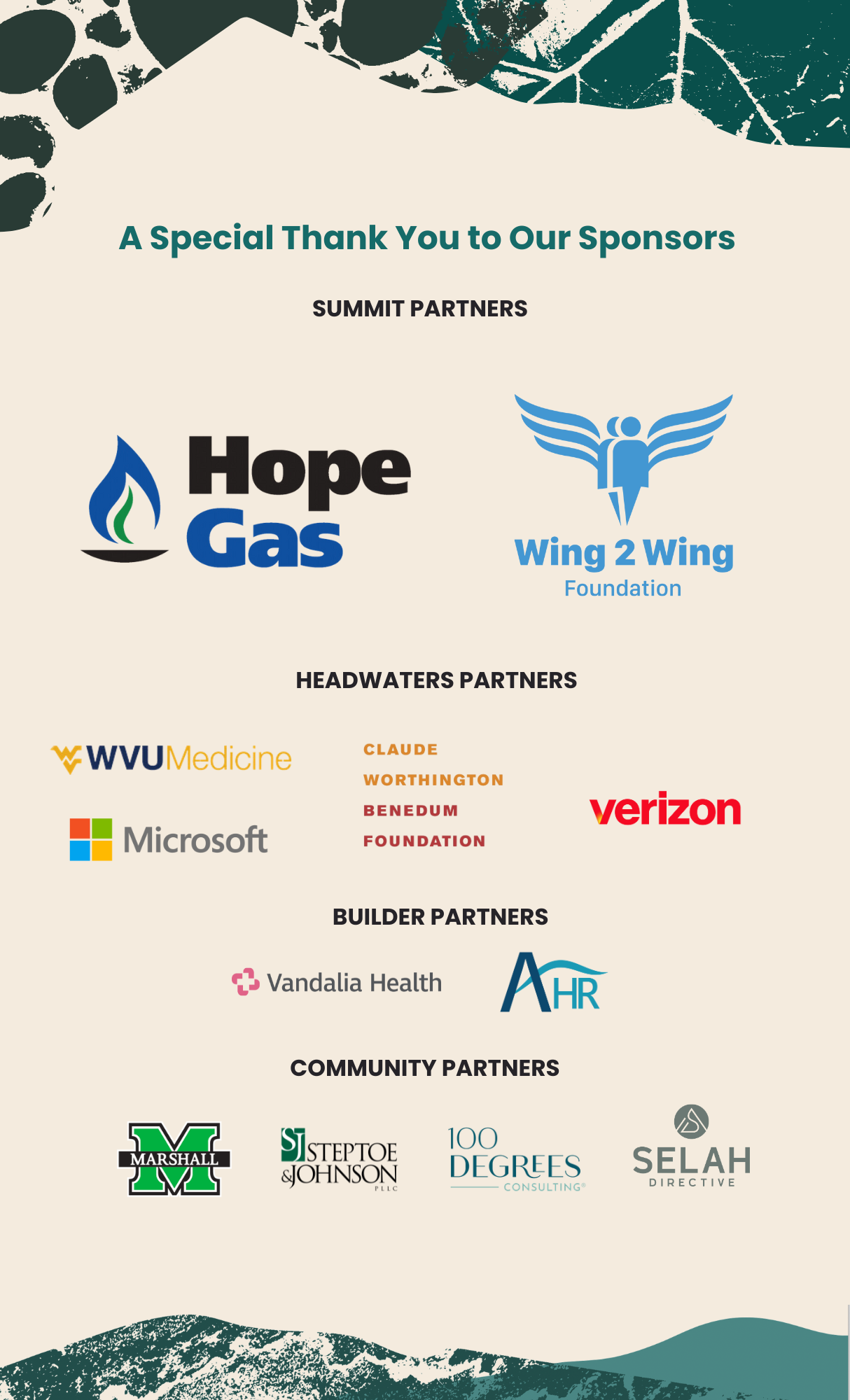 Interested in making a bigger impact? Explore sponsorship opportunities or consider joining a panel discussion. Contact Jennifer Taylor at jennifer@generationwv.org.